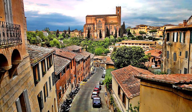 Efter frukost väntar en utflykt till Södra Italien. Vi besöker Siena, en stad som endast överträffas av Florens vad gäller konstnärlig rikedom. Den arkitektoniska helheten i stadens medeltida centrum är betagande. Staden är omgiven av en ringmur, byggd på tre kullar och husen består av ”sienarött” tegel från trakten. Siena byggdes 1287–1348 och staden är full av välbevarade palats och byggnader i gotisk stil. Under en rundvandring med lokalguide får vi bl.a. se det berömda torget Il Campo där också rådhuset med sina många salar och väggmålningar ligger. Vi ser också katedralen Santa Maria, byggd i vit marmor och som tronar på Sienas högsta punkt samt den mäktiga hallkyrkan San Domenica, varifrån utsikten över Siena är hänförande. Vid Piazza Salimbeni ser vi de tre palatsen som tillhör Sienas mest berömda bank. Under vår promenad passerar vi stadens präktigaste brunnshus Fontebranda och många andra vackra brunnar.